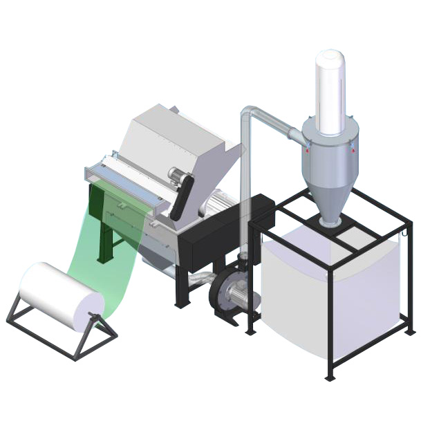 適用于熱成型,紙杯,環(huán)保餐盒,吸塑包裝等成型機尾端,用作網(wǎng)狀余料的在線粉碎,輸送,儲存。